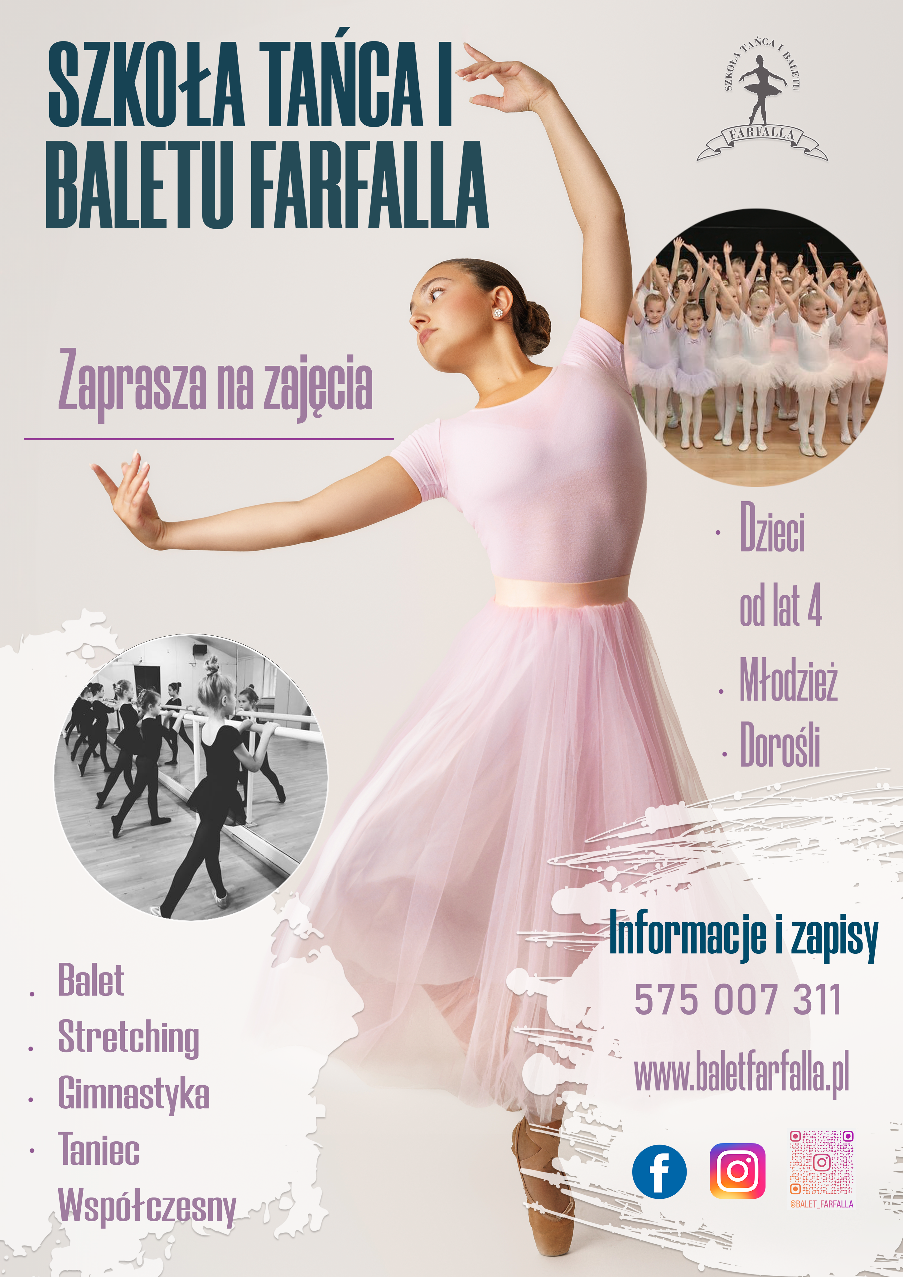 Szkoła Tańca i Baletu Farfalla zaprasza na zajęcia dzieci od lat 4, młodzież oraz dorosłych na zajęcia baletowe.