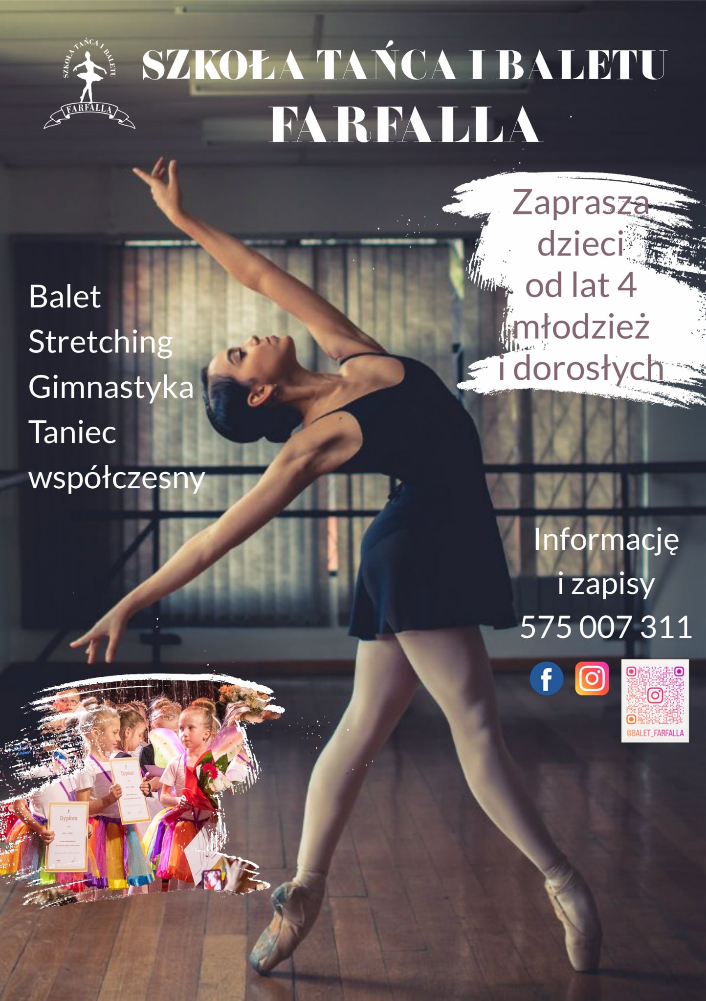 Szkoła Tańca i Baletu Farfalla zaprasza na zajęcia dzieci od lat 4, młodzież oraz dorosłych na zajęcia baletowe.